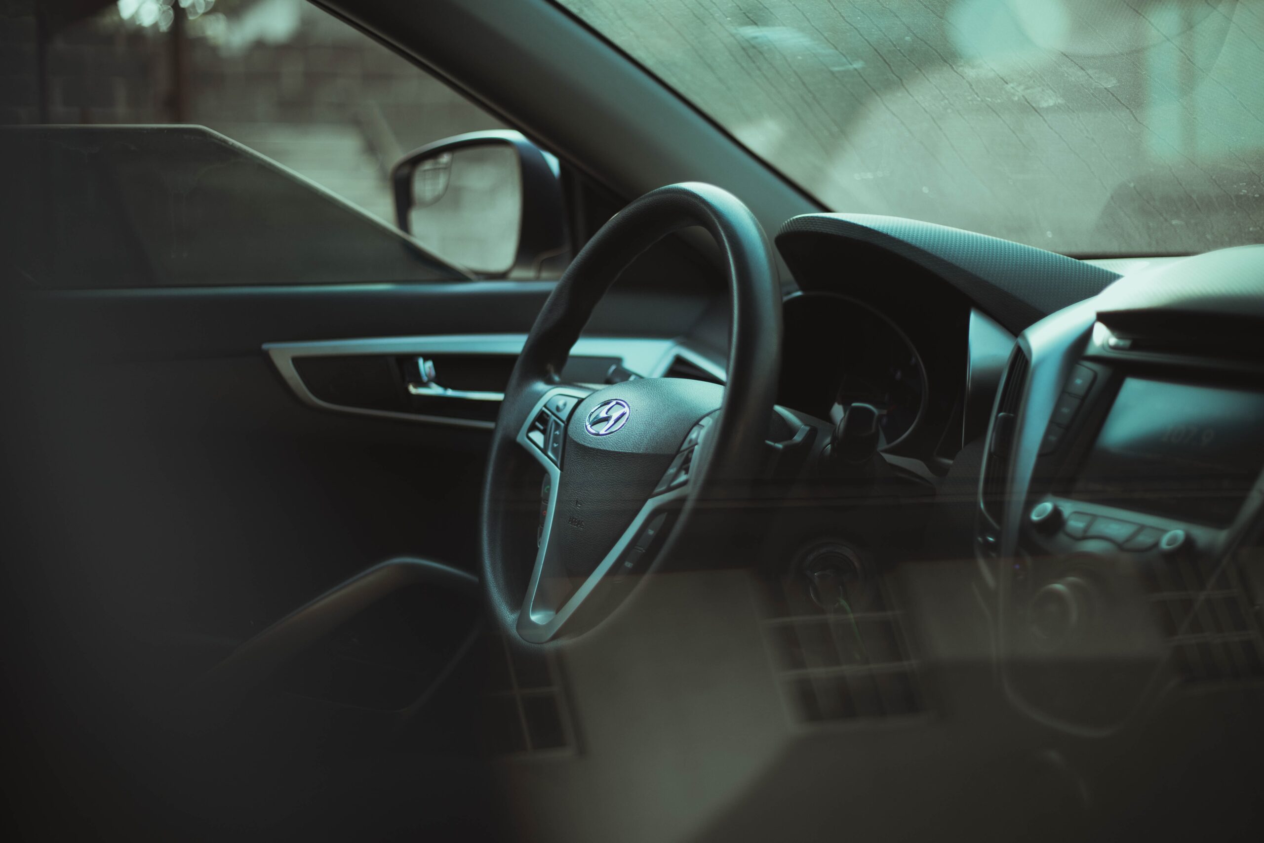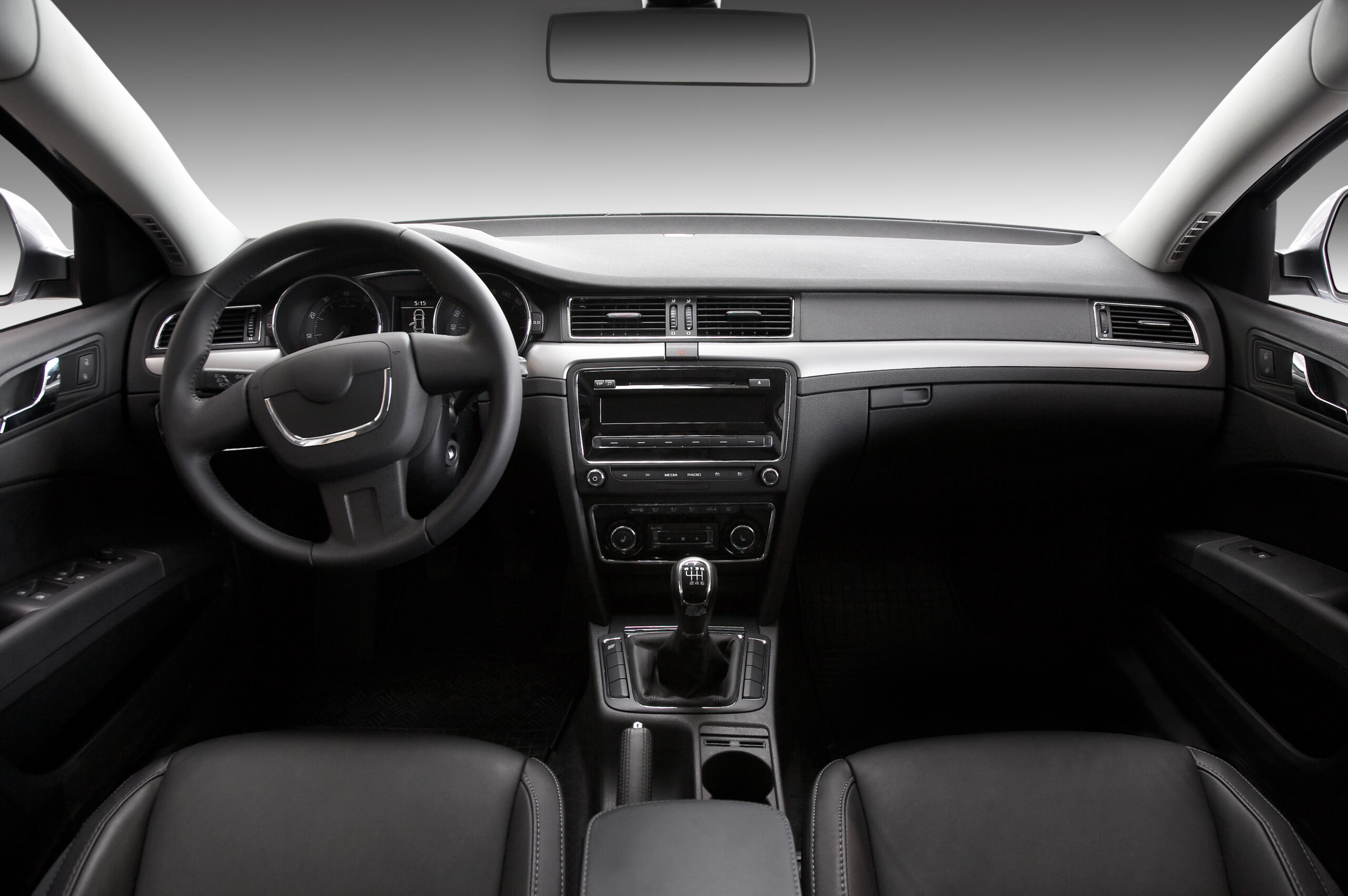 Uma imagem mostrando o interior de um carro bem cuidado, com tapeçaria impecável. O painel [...]