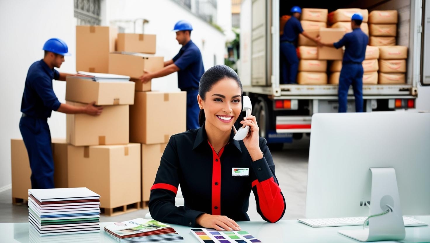 Uma colaboradora da JB Revestimentos atendendo ao telefone com um sorriso, em uma mesa organizada [...]